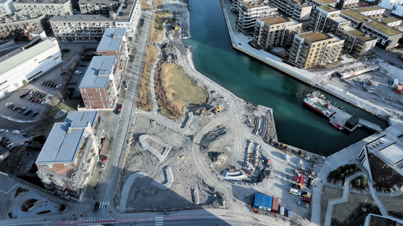 - Parken strekker seg langs Lervigbukta og opp på taket til den nye brannstasjonen.