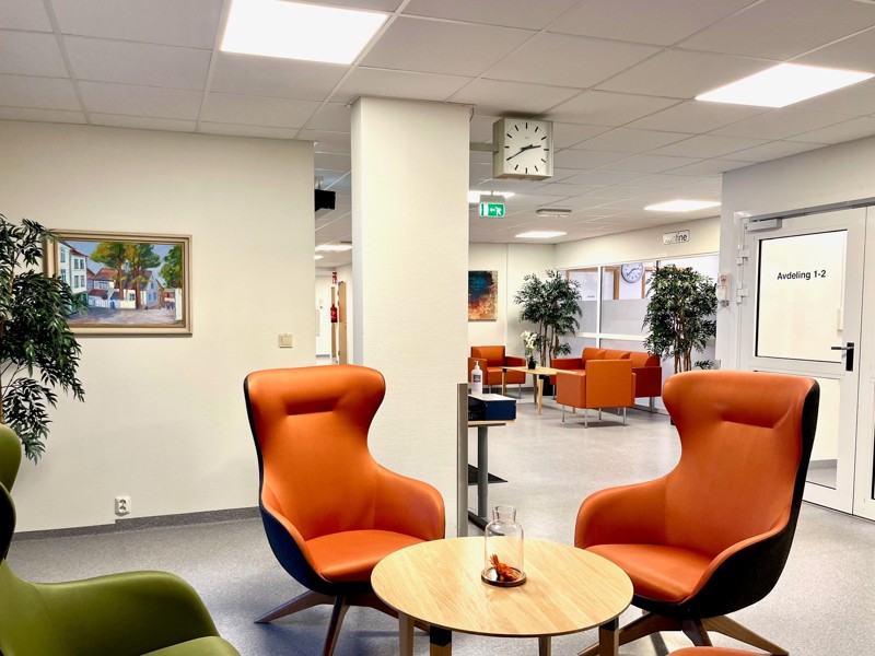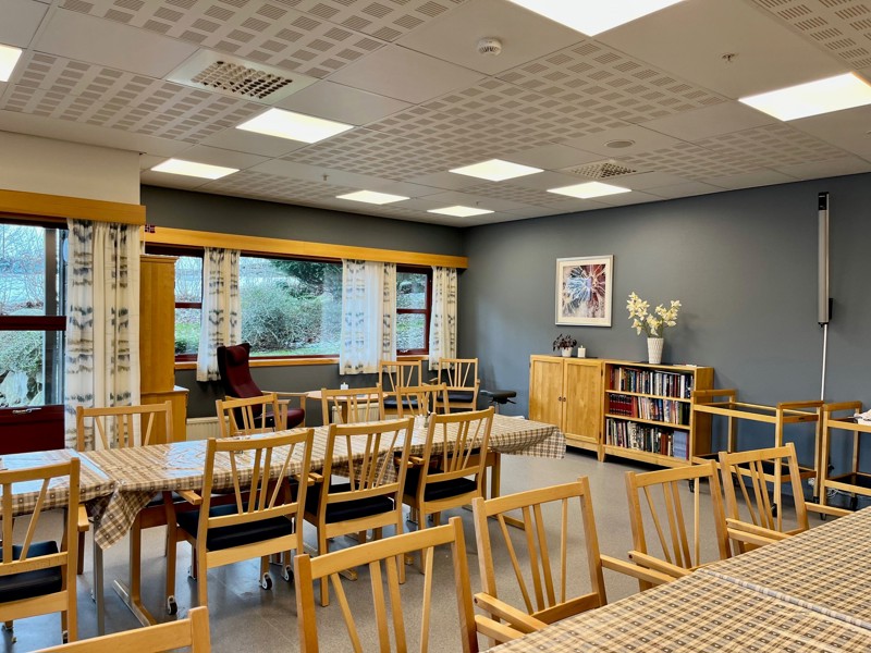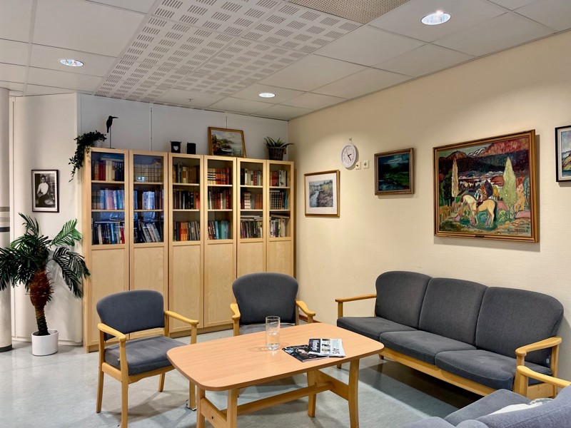 Hovedinngangen finner du foran i hovedbygget. I underetasjen finner du hovedkjøkken, kontorer, treningslokale, fotpleier, frisør, bibliotek og undervisningsrom. Ellers i hovedbygget finner du avdelingene 1 og 2.