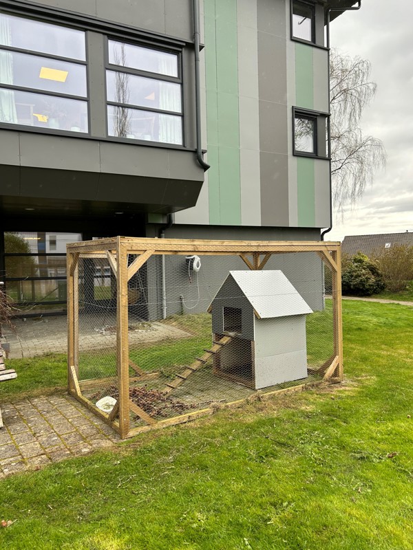 Sykehjemmet har en nydelig hage med jordbær, urter, frukttrær og høner. Årlig klekker de kyllinger i sin rugemaksin, og hønene er gode miljøterapeuter for beboerne. Hønene bor på sykehjemmet i sommermånedene, og når de ikke bor på sykehjemmet er de på ferie på Høle hos en ansatt. Årets eggproduksjon er i gang – og egg hentes daglig inn til måltidene.