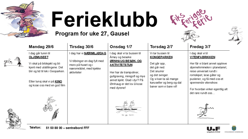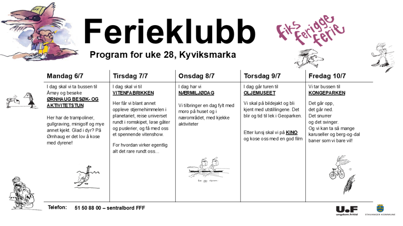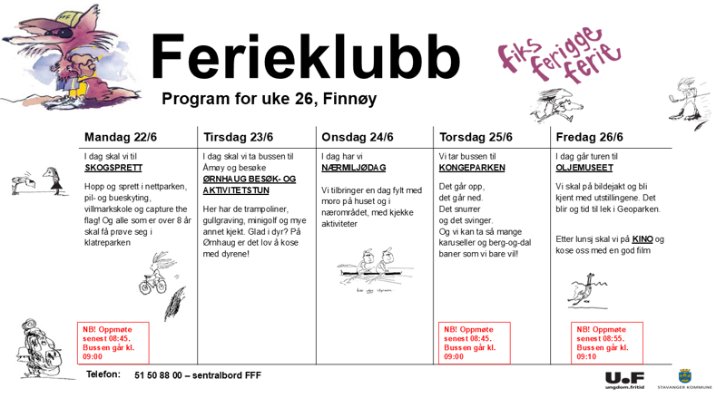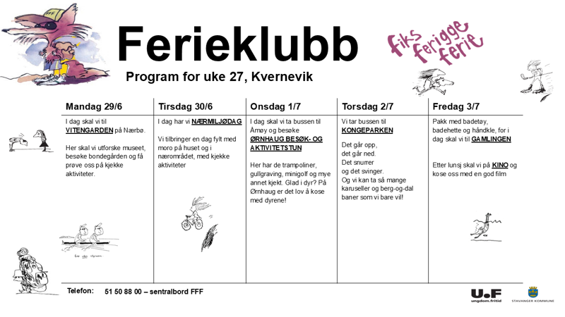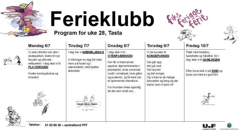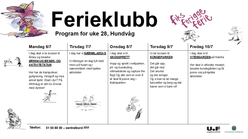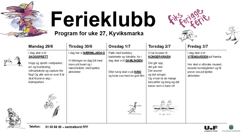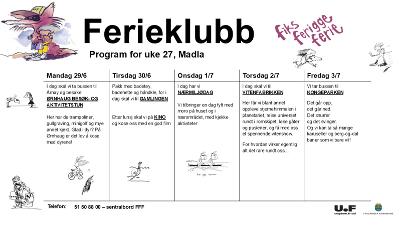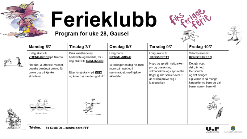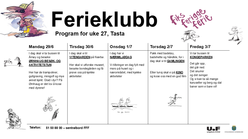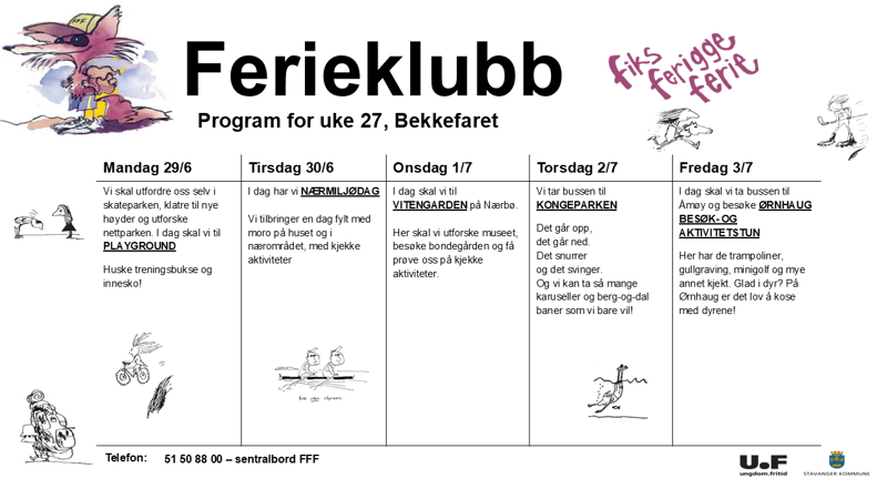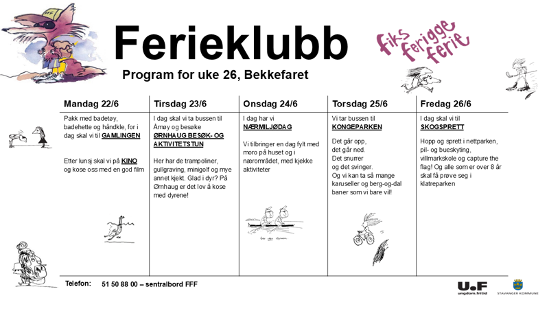 Her kan du bla gjennom ukesprogrammene for alle ukene og basene i sommer. Det blir som alltid et variert og spennende eventyr.