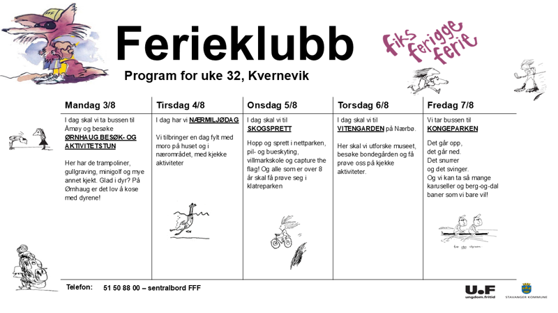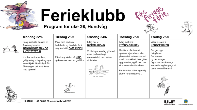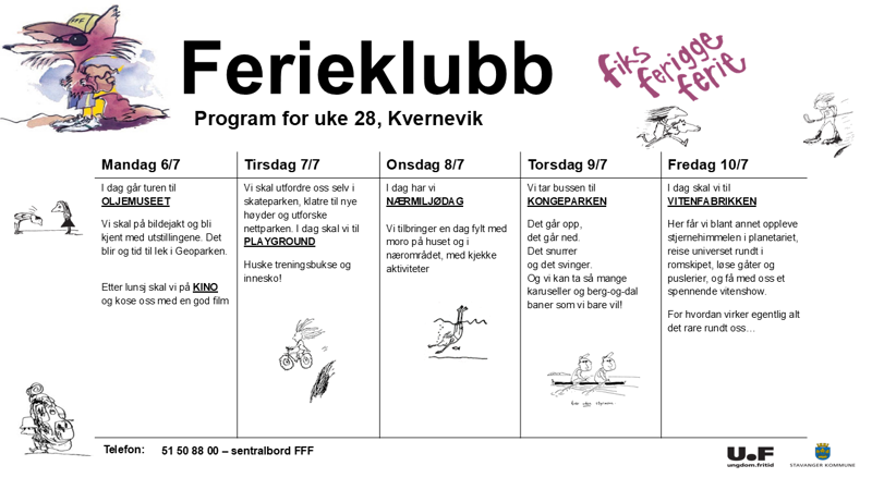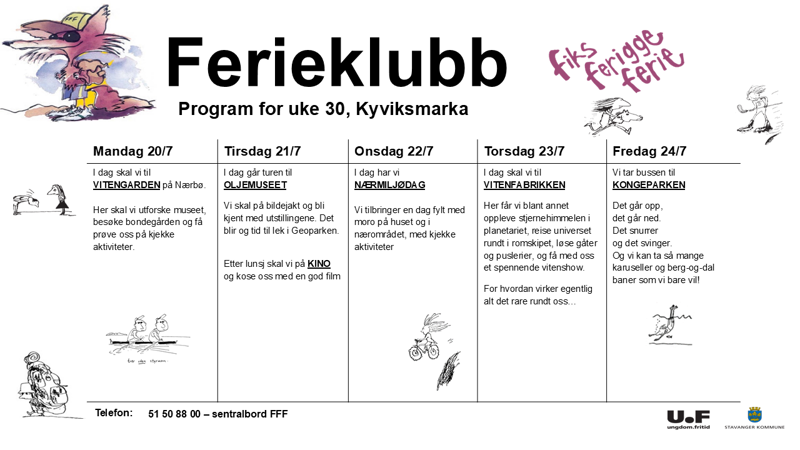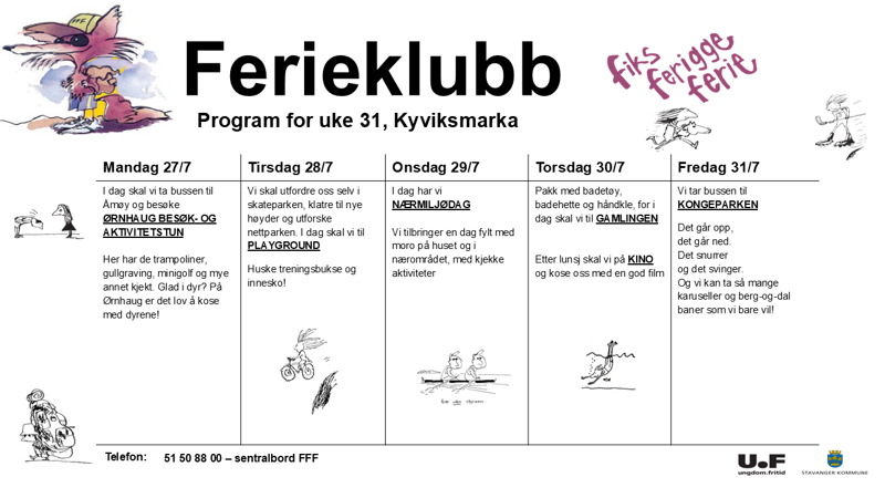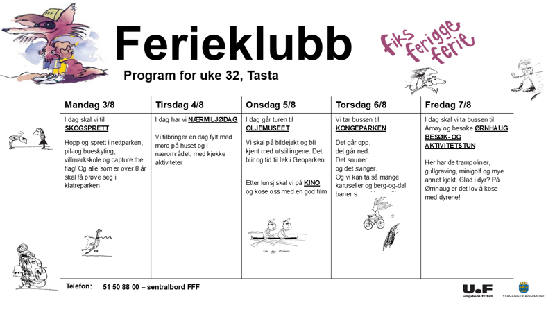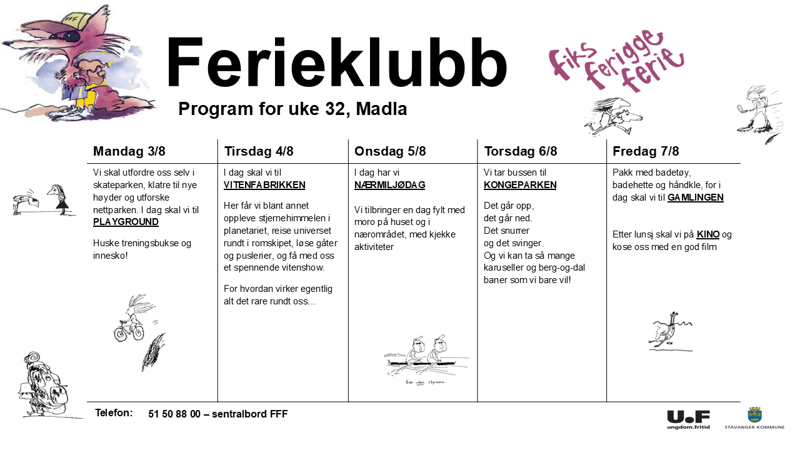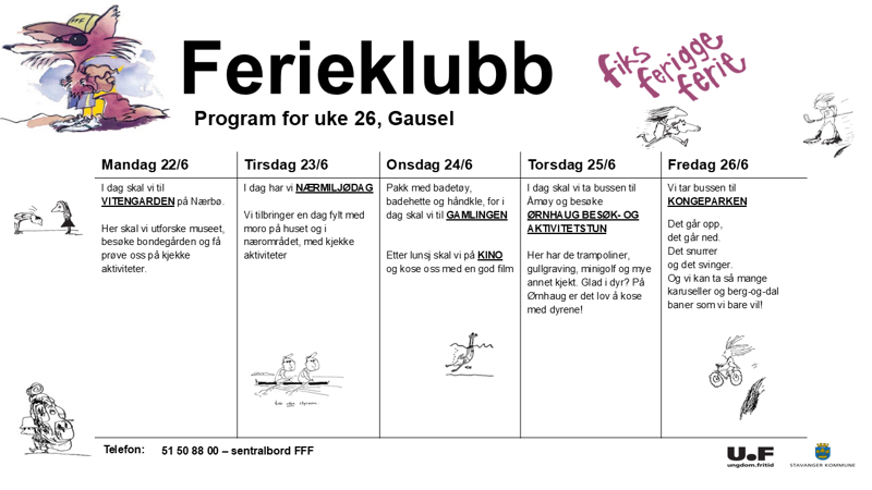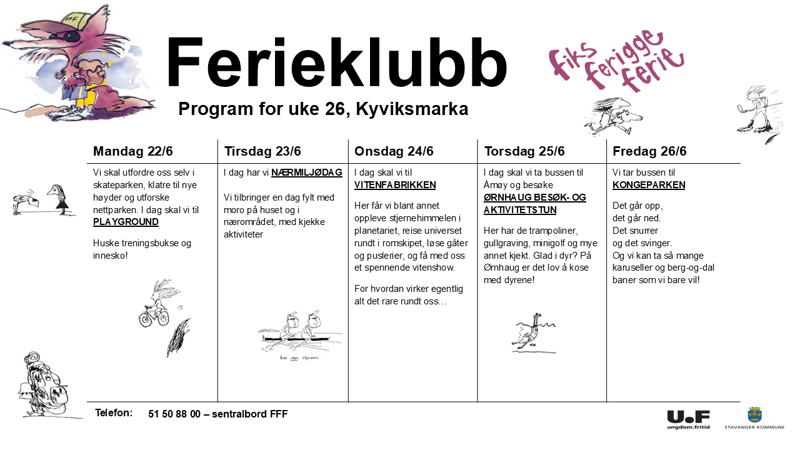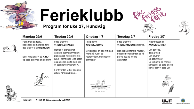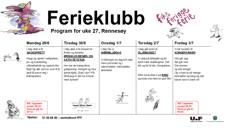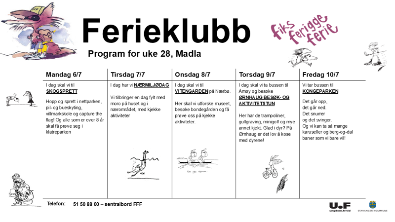 Her kan du bla gjennom ukesprogrammene for alle ukene og basene i sommer. Det blir som alltid et variert og spennende eventyr.