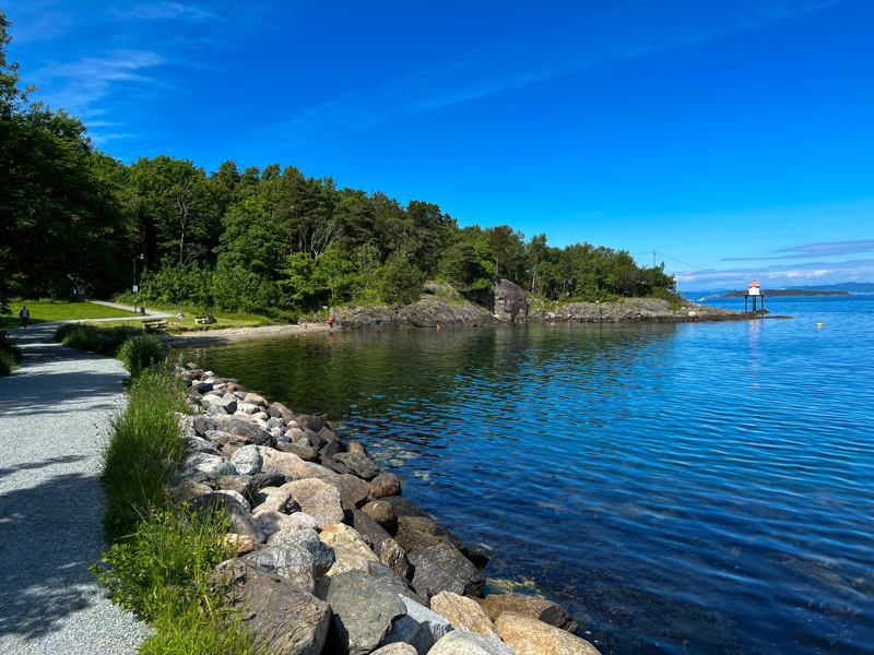 Badeplassene ligger i et større friområde med gangveier langs Gandsfjorden i Storhaug bydel.