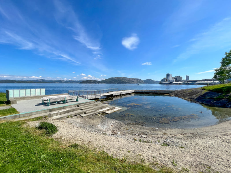 Sjøbadet i Strømvig er fylt med sjøvann, så temperaturen er vanligvis noen grader varmere her enn i sjøen.