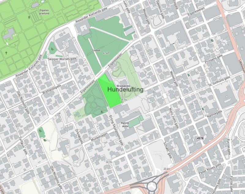 - Eiganes hundeluftingsområde, inngjerdet område mellom Breidablikk og Munkehagen