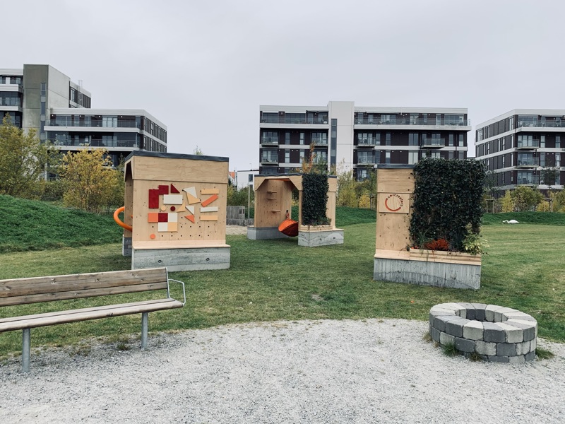 - Co-creators AS testet tre blokker for aktivitet og hvile. Blokkene var laget av gjenbrukt materiale fra andre byggeprosjekter i regionen.