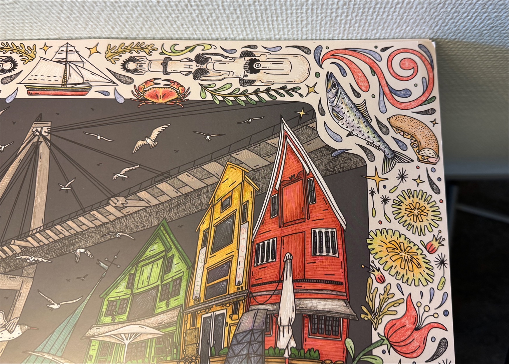Den blomsterfylte borden som rammer inn motivet er inspirert av middelalder-illustrasjoner, siden Stavanger er en middelalderby. Borden rammer inn stavangerhistorien samtidig som den formidler detaljer ved byens historie.