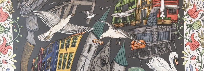 – Jeg har ønsket å kombinere tradisjonelle og moderne teknikker for å gjenspeile Stavangers historie og utvikling. Tegningen min er inspirert av flere konsepter, som jeg har forsøkt å skvise sammen til ett motiv, forteller kunstneren bak plakaten, Johanna Warberg.