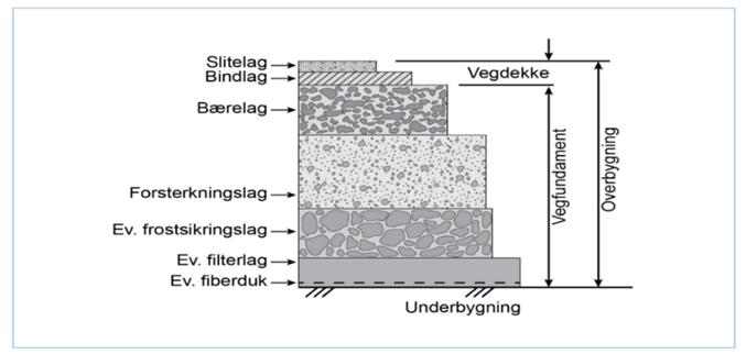 Den del av veikroppen som er over traubunn/planum. Overbygningen kan bestå av frostsikringslag, filterlag (ev. fiberduk), forsterkningslag, bærelag og dekke (bindelag og slitelag). |