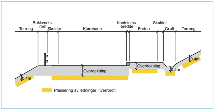 Ved oppgradering, oppgraving eller omlegging av veien skal ledninger grunnere enn 40 cm overdekning legges ned til ledningssonen under forsterkningslaget.